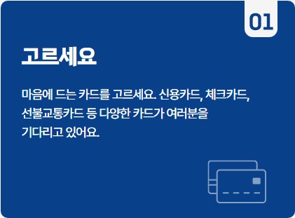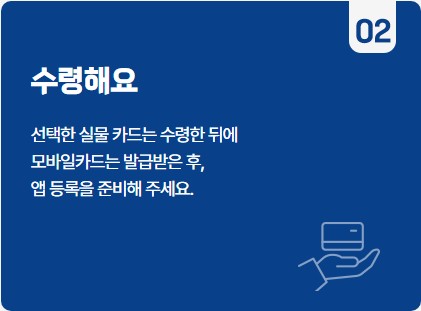 2. 카드를 신청하고 수령을 기다립니다. 모바일카드는 신청 후 바로 발급이 가능합니다.