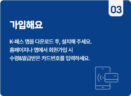 3. 카드를 신청하고 수령까지 했으면, K-패스 앱에 발급받은 카드 번호를 등록해야합니다. '가입해요'메뉴를 이용해서 K-패스 앱을 다운로드 후 설치하고, 발급받은 카드번호를 등록하세요.