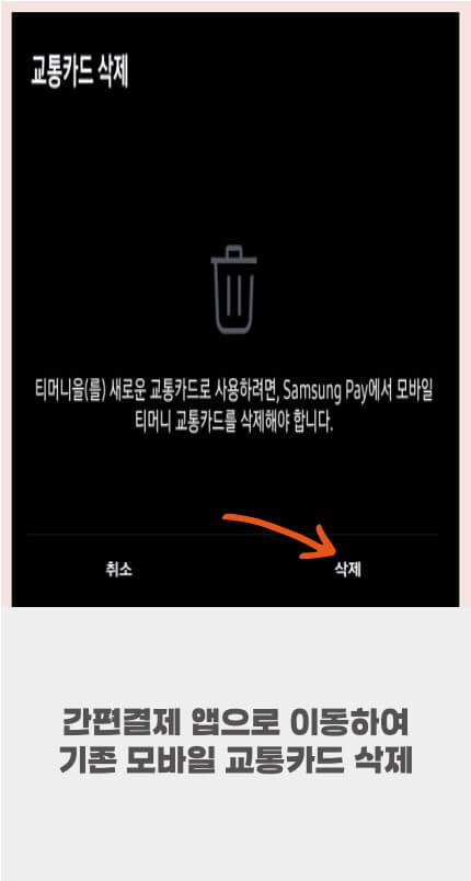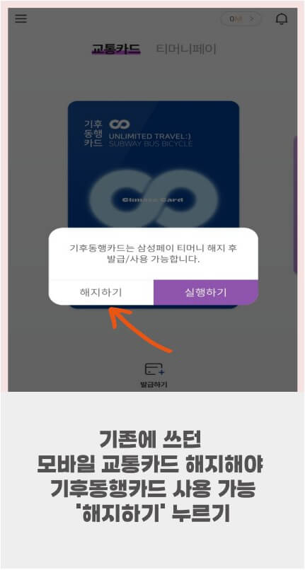 5. 기존에 사용하는 다른 티머니 교통카드가 있었다면, '해지하기'와 '교통카드 삭제-삭제' 메뉴를 선택합니다.