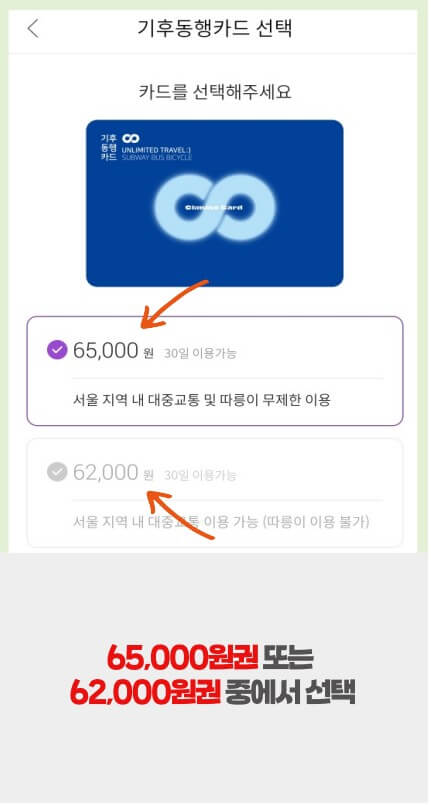 1. 기후동행카드는 이용하는 교통수단에 따라 2가지 중 선택합니다.