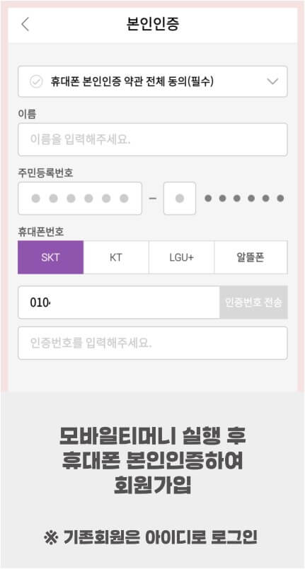 1. 모바일티머니 앱을 다운로드하고 설치했다면, 본인인증을 하고 모바일티머니 회원가입을 해야 합니다.