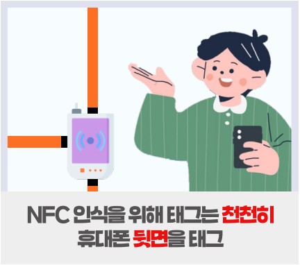 2. 이전 단계에서 기후동행카드를 주교통카드로 했다면, 태그기에 핸드폰 뒷면을 태그 해서 사용합니다.