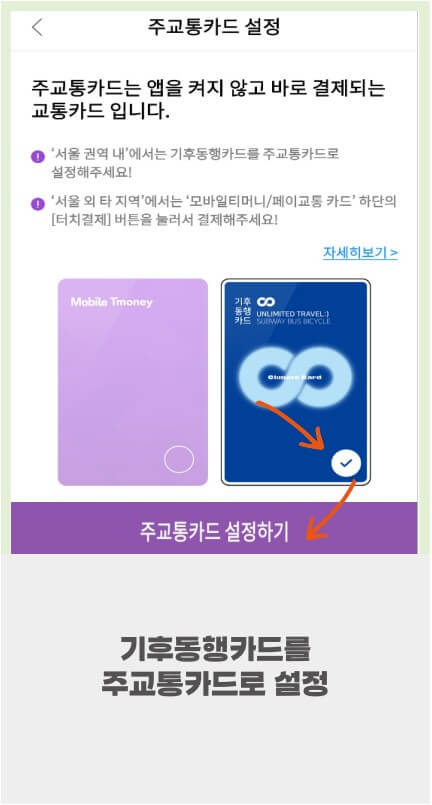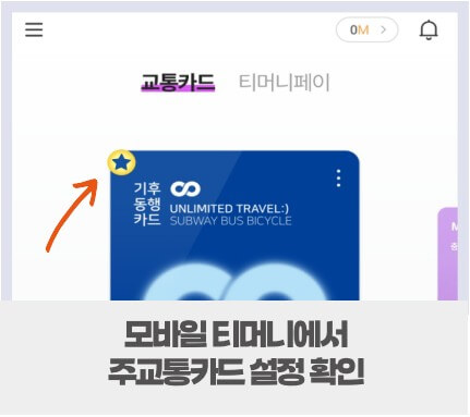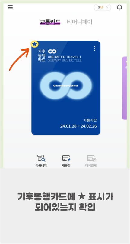 4. 기후동행카드에 별표시가 되어 있으면, '주교통카드 설정'까지 완료된 것입니다.