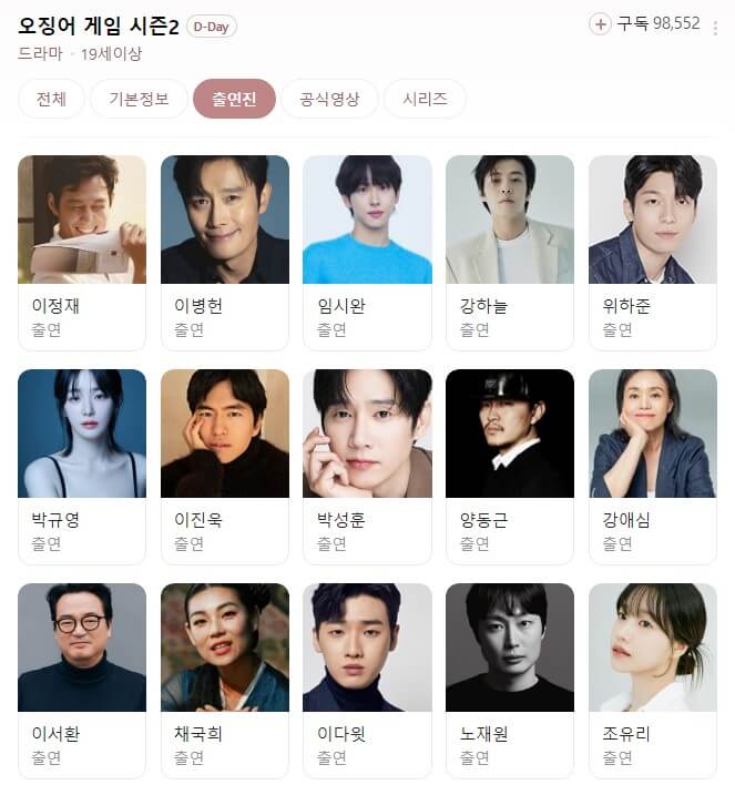 이번 시즌에는 시즌1에서 활약했던 이정재, 이병헌, 공유, 위하준이 다시 출연하며, 새로운 캐릭터로 임시완, 강하늘, 박성훈, 양동근이 합류합니다. 각 캐릭터들은 독특한 배경과 개성을 지니고 있어, 이야기에 더욱 깊이를 더할 것입니다.